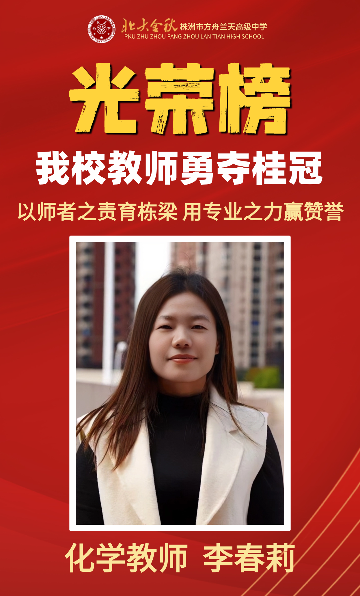 喜报!我校李春莉老师荣获株洲市化学高考原创命题比赛一等奖! -