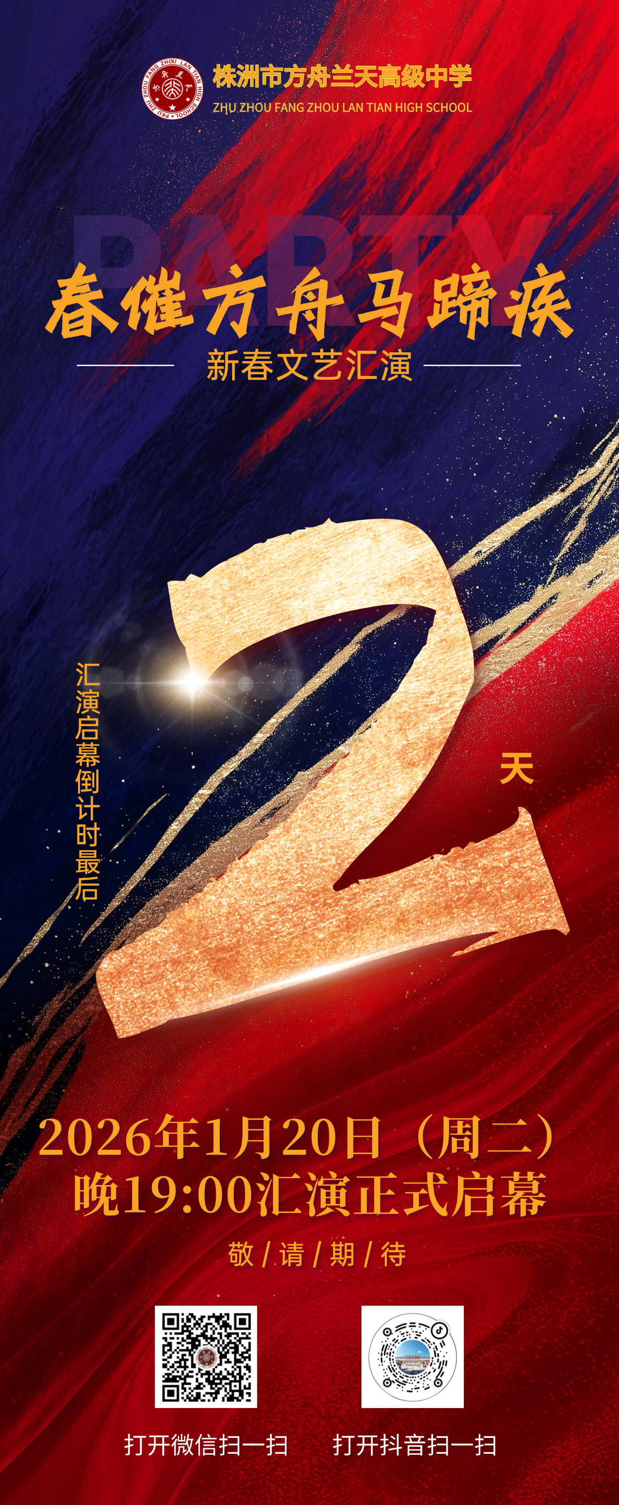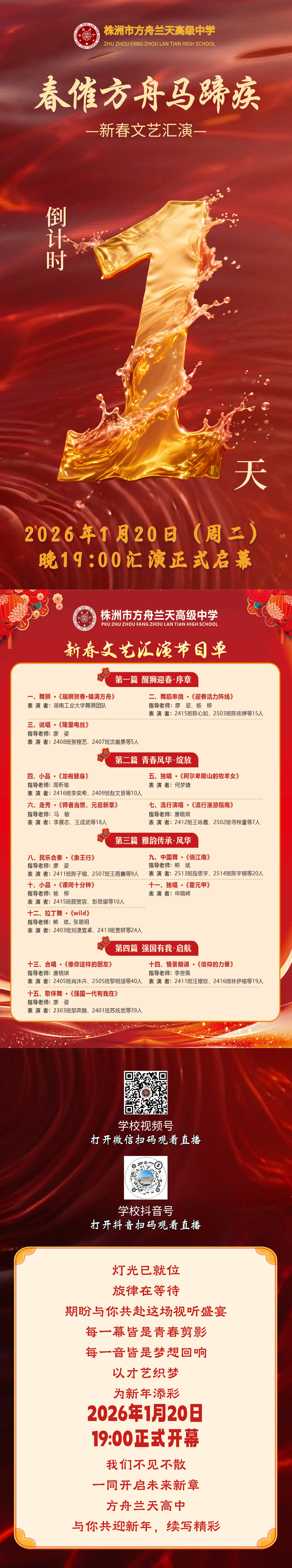 直播预告丨方舟兰天高级中学2026新春文艺汇演倒计时一天!